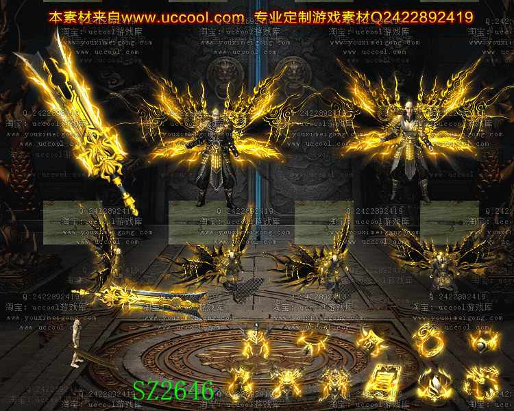 复古套装 金色翅膀武器衣服素材PNG格式-SZ2646